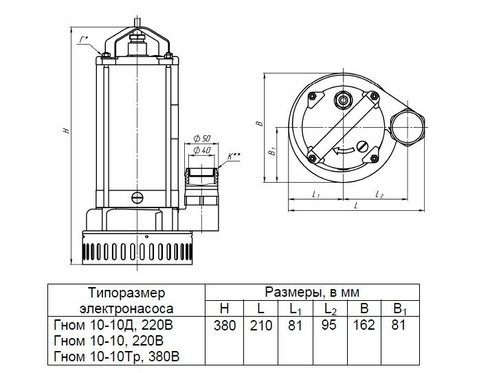 Электронасосы центробежные погружные типа Гном предназначены для откачивания загрязненных вод температурой до 35 С, исполнение Тр – до 60 ºС плотностью до 1100 кг/м3 , при содержании твердых механических примесей до 10 % по массе с плотностью твердых частиц не более 2500 кг/м3 и максимальным размером до 5 мм.