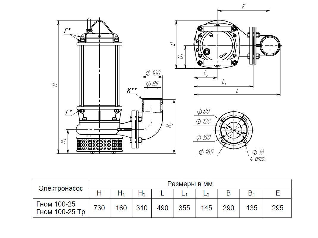Электронасосы центробежные погружные типа Гном предназначены для откачивания загрязненных вод температурой до 35 С, исполнение Тр – до 60 ºС плотностью до 1100 кг/м3 , при содержании твердых механических примесей до 10 % по массе с плотностью твердых частиц не более 2500 кг/м3 и максимальным размером до 5 мм.