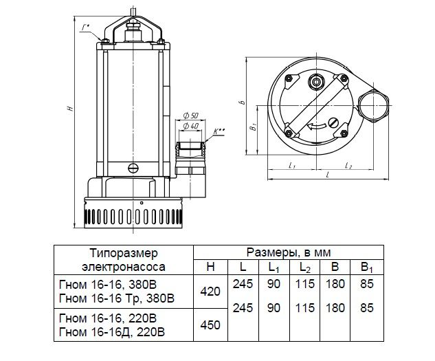 Электронасосы центробежные погружные типа Гном предназначены для откачивания загрязненных вод температурой до 35 С, исполнение Тр – до 60 ºС плотностью до 1100 кг/м3 , при содержании твердых механических примесей до 10 % по массе с плотностью твердых частиц не более 2500 кг/м3 и максимальным размером до 5 мм.