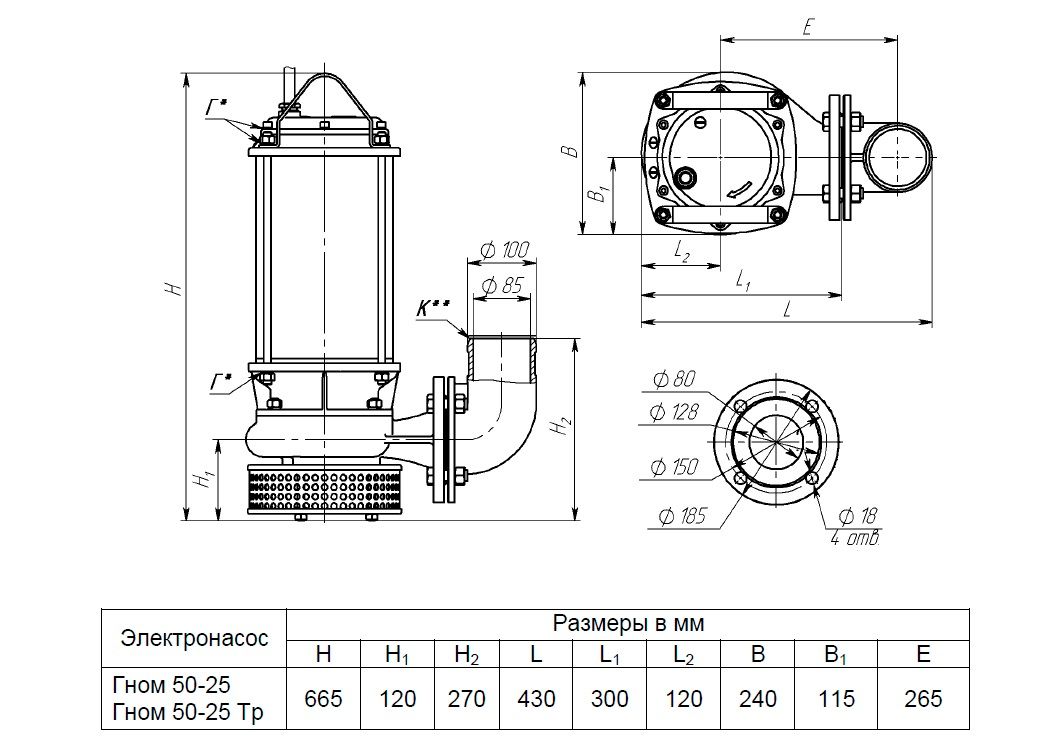 Электронасосы центробежные погружные типа Гном предназначены для откачивания загрязненных вод температурой до 35 С, исполнение Тр – до 60 ºС плотностью до 1100 кг/м3 , при содержании твердых механических примесей до 10 % по массе с плотностью твердых частиц не более 2500 кг/м3 и максимальным размером до 5 мм.