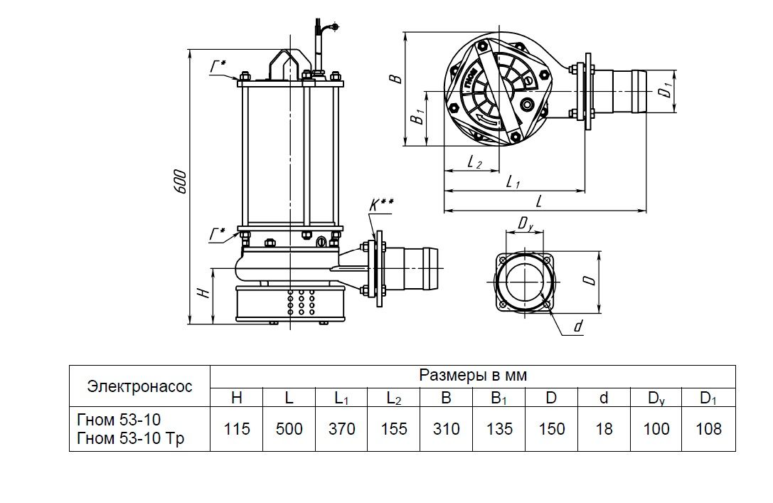 Электронасосы центробежные погружные типа Гном предназначены для откачивания загрязненных вод температурой до 35 С, исполнение Тр – до 60 ºС плотностью до 1100 кг/м3 , при содержании твердых механических примесей до 10 % по массе с плотностью твердых частиц не более 2500 кг/м3 и максимальным размером до 5 мм.